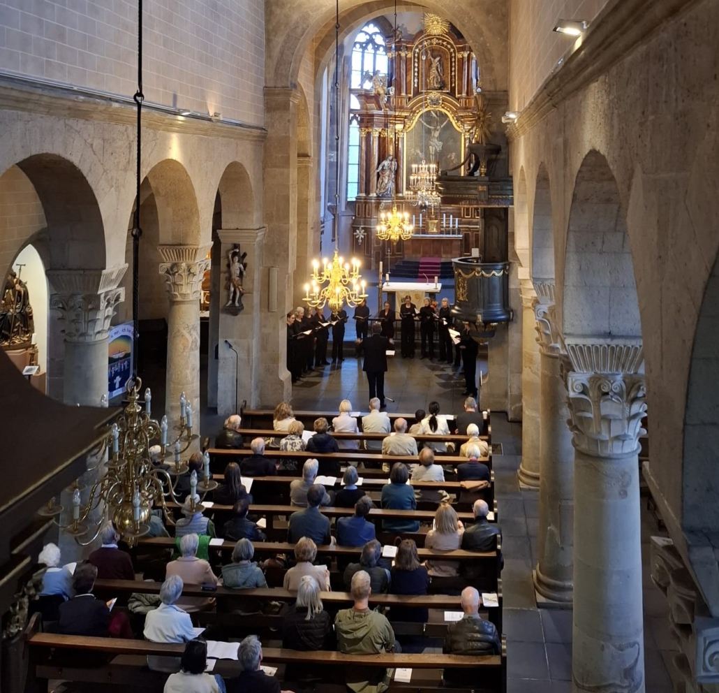 Vielgestaltig eröffnete der Frankfurter Motettenchor unter Leitung von Thomas Hanelt die neue Saison der Konzerte in Frankfurts ältestem Gotteshaus. Das namhafte Ensemble, 1991 gegründet und seitdem von Hanelt geleitet, zeigte in exzellentem Vortrag einen Querschnitt seines Repertoires. Darunter zu Beginn das Recordare Virgo Mater des Renaissancekomponisten Josquin Desprez (1450-1521) sowie als ersten Höhepunkt die komplette Missa Crux Fidelis von Jean- Marie Plum (1899-1944). Durchsichtig, klangschön und fein konturiert verliehen die Sängerinnen den Partituren Gestalt. Berührend gelang das „Nigra Sum“ des Katalanen Pablo Casals. Der Cellist und Humanist komponierte bisweilen, darunter dieses für Chöre außerordentlich dankbare Werk. Das namensgebende Stück „Lux Aeterna“ (Ewiges Licht), komponiert vom 1978 geborenen Michael John Trotta, stand am Ende der Vortragsfolge. Viel Beifall spendete das Publikum im Kirchenschiff dem Gesang des Chors.